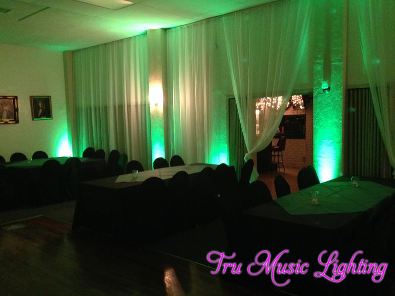 Uplighting can turn a boring room with plain walls into a unique and colorful space. If expertly coordinated in advance, these color schemes can be used to bring out the accent colors at your event and it works especially well at weddings! The colors can match your bridesmaid dresses, flowers and more. When used properly, uplighting can greatly enhance the ambiance of the room in an elegant way.